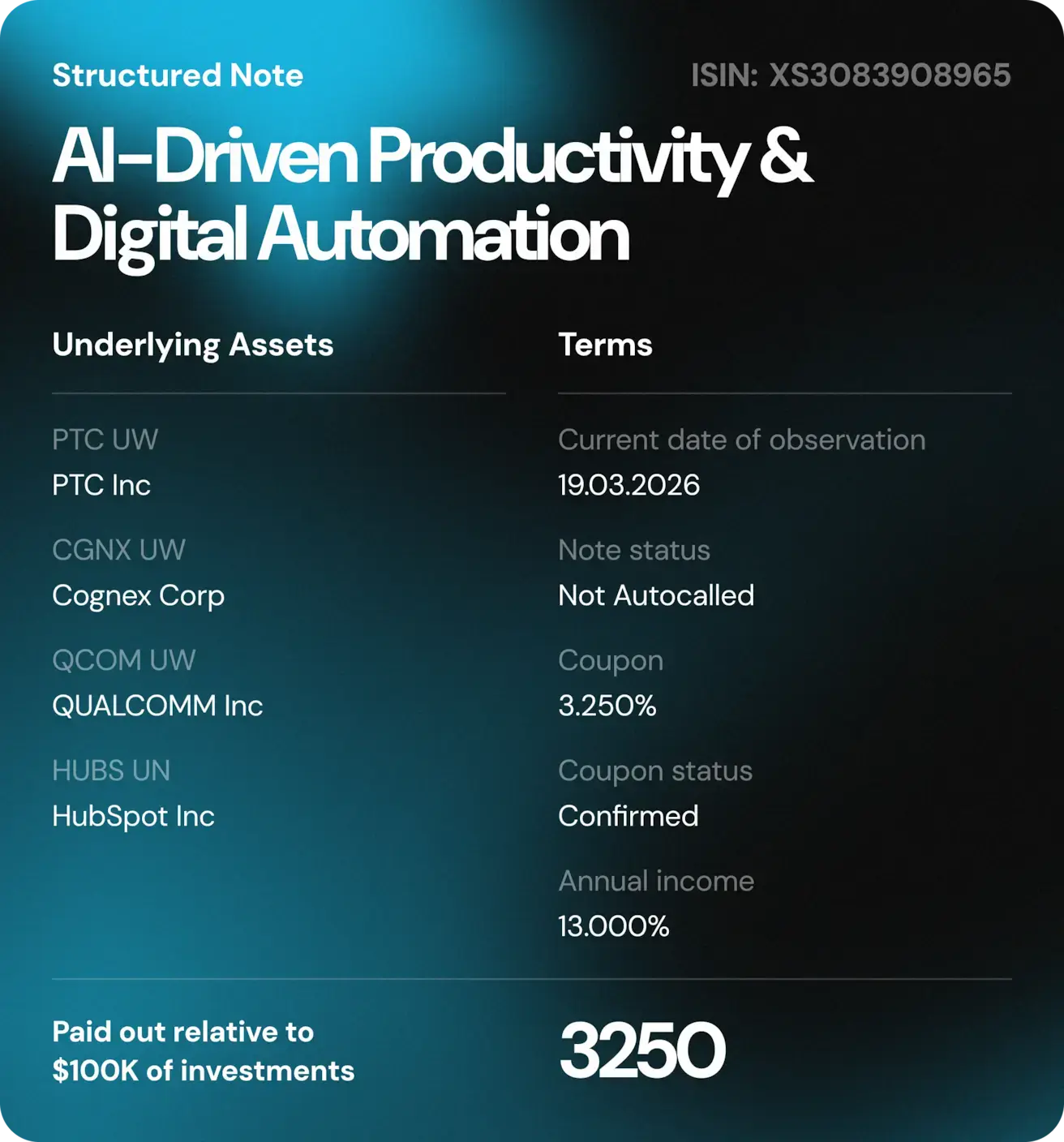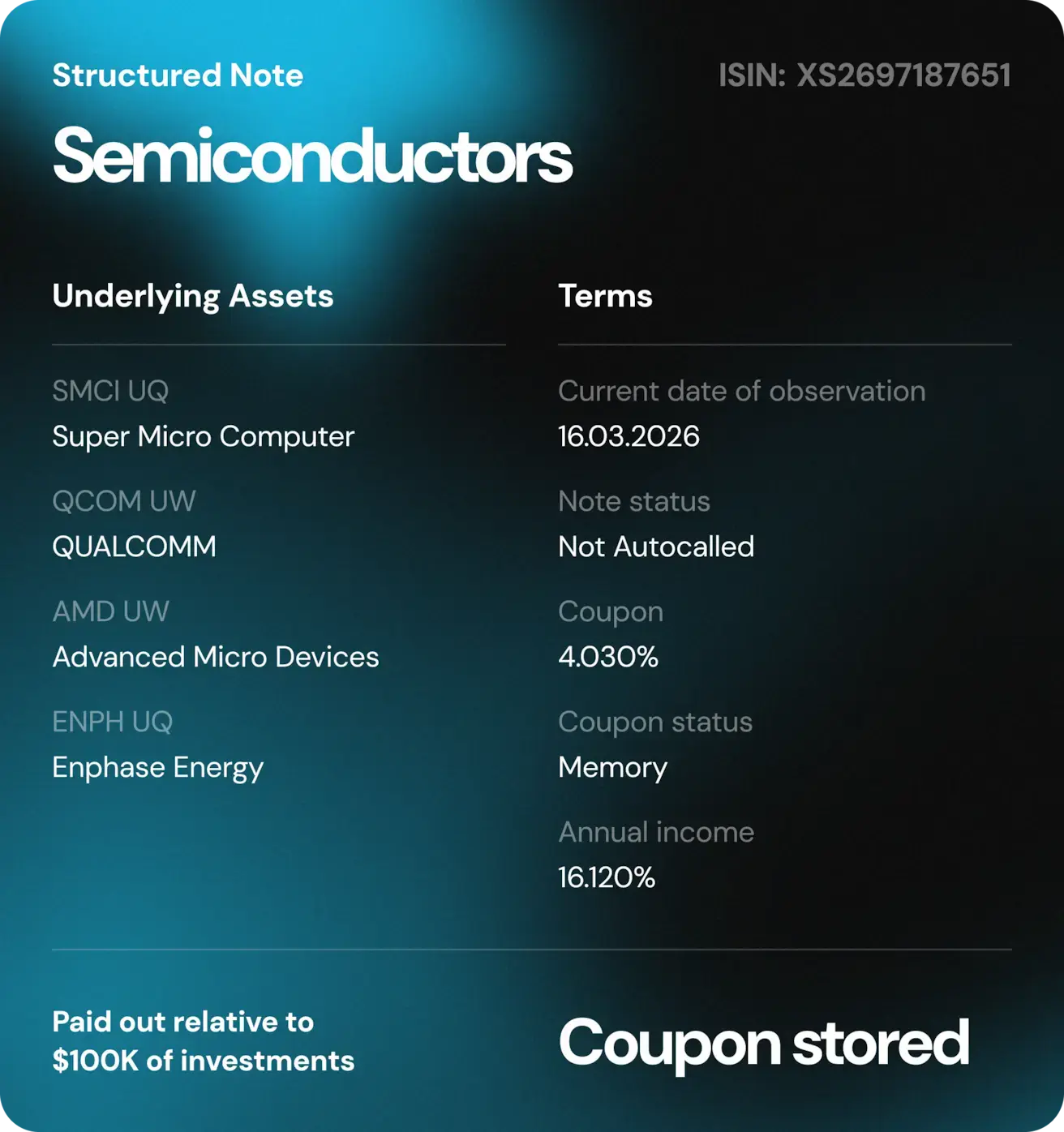 Vaatluskuupäeval kauples Super Micro Computer (SMCI) ajutiselt allpool kupongibarjääri. Võlakirja tingimuste kohaselt säilib selle perioodi kupong ning makstakse välja, kui vara hind taastub barjääritasemest kõrgemale.