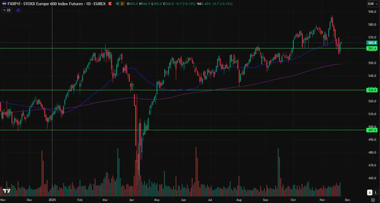 Weekly performance: –1.86% (week closed at 565.1). Year-to-date: +11.77%.