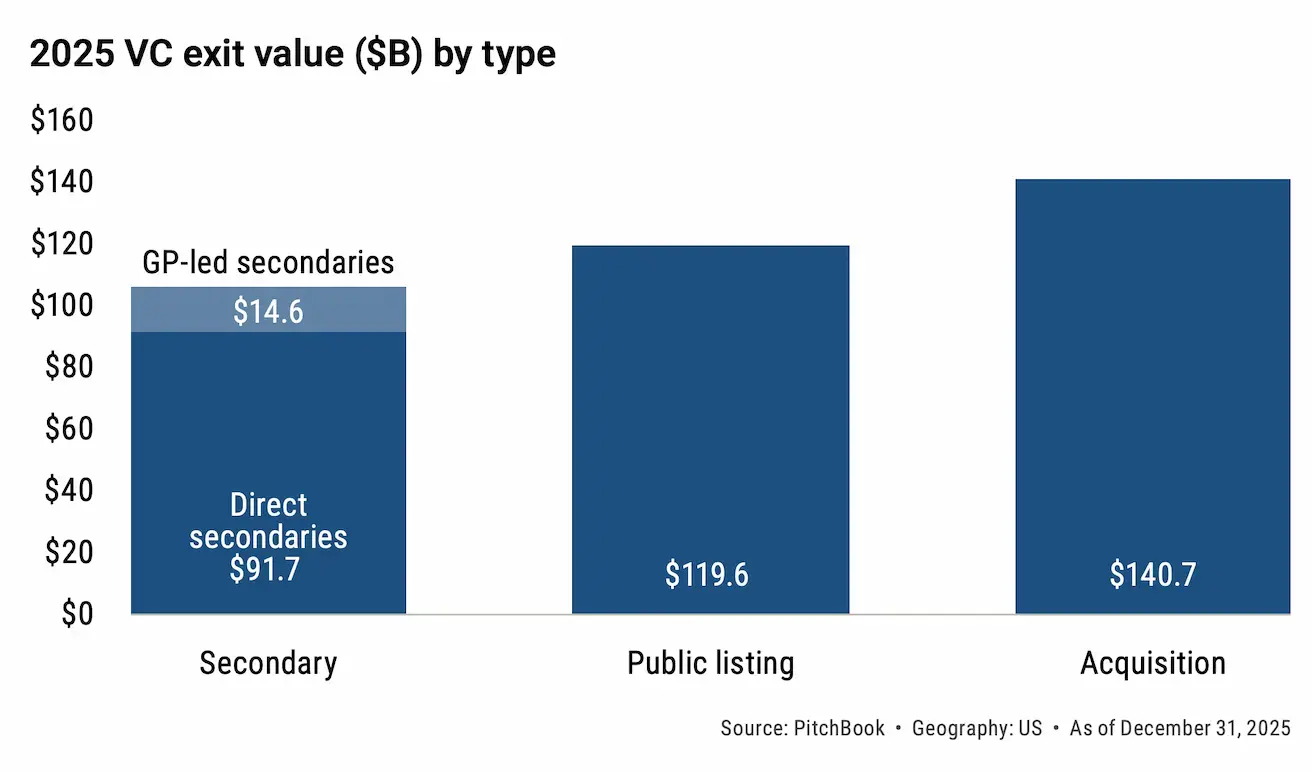 2025 m. rezultatai patvirtina šios tendencijos tvarumą: sandorių apimtys 2025 m. IV ketv. išaugo 83,4% lyginant su 2024 m. IV ketv. Tuo pat metu rinka laukia virtinės mega-IPO – tarp potencialių kandidatų minimi SpaceX, Anthropic ir OpenAI, nors ne visi viešieji siūlymai patvirtinti oficialiai.