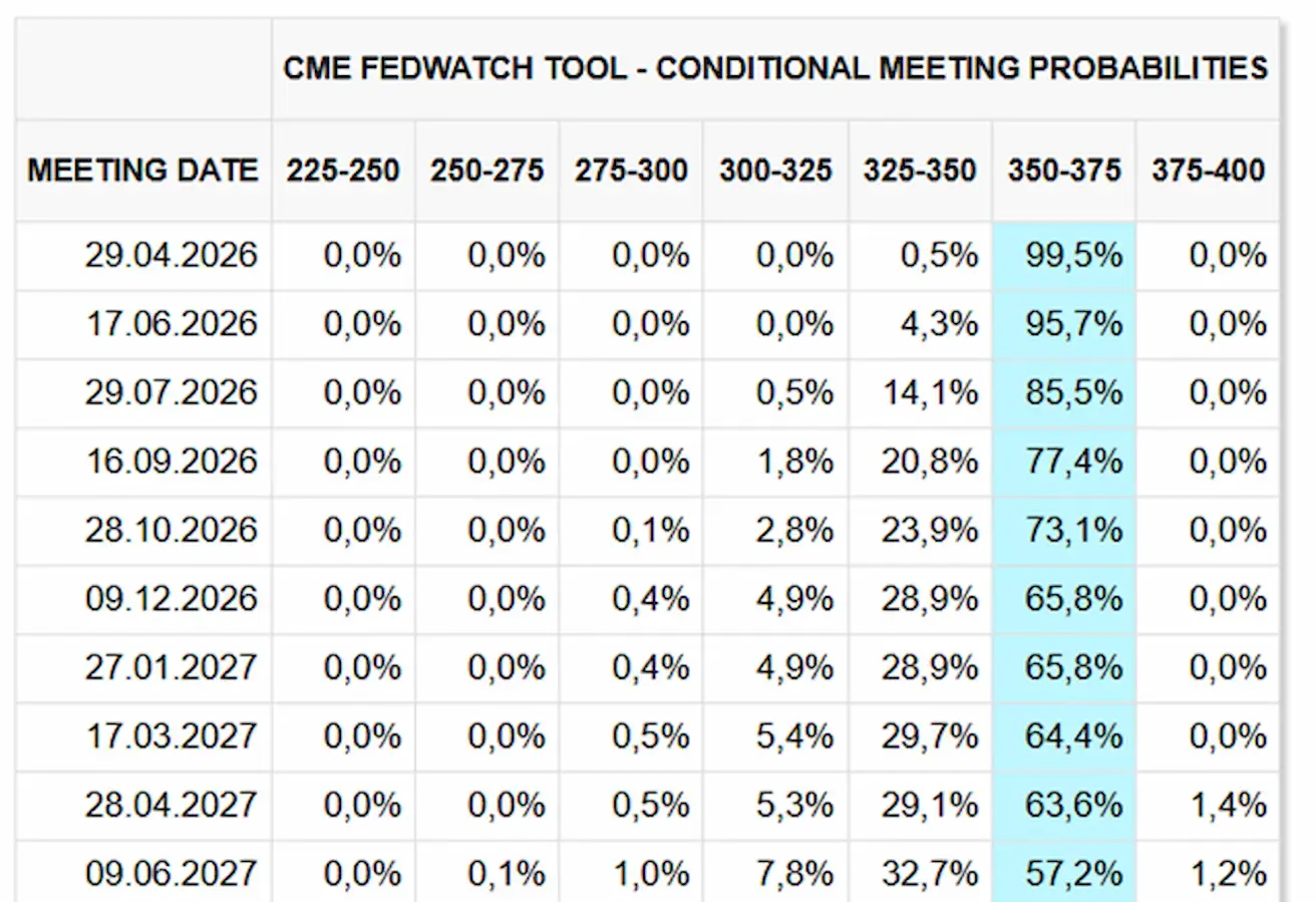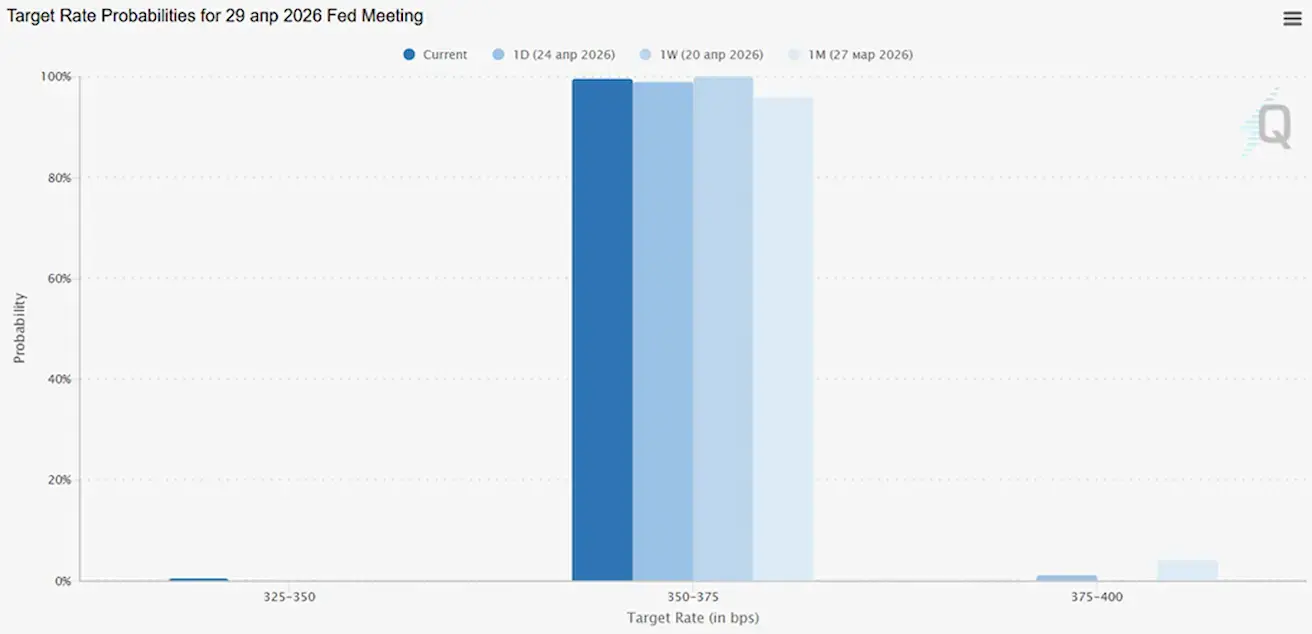 For the upcoming meeting (April 29), the estimated probability of the rate remaining unchanged stands at 99.50%.