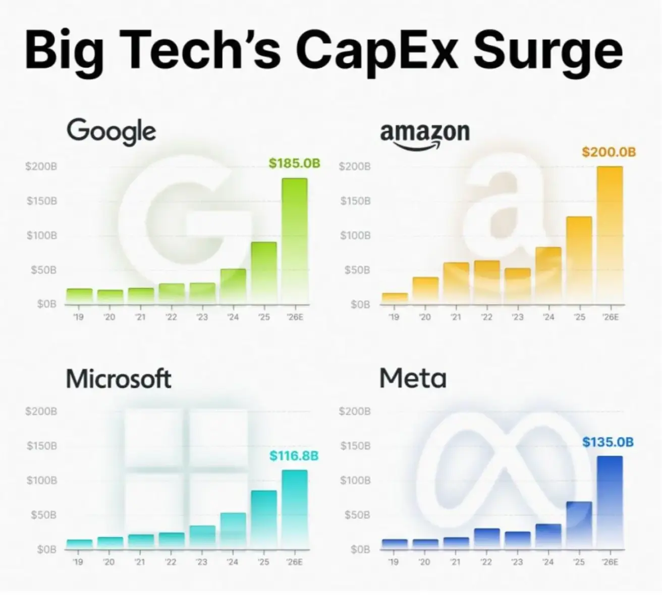 The sharp increase in CapEx (data centers, AI infrastructure, semiconductors, power grids) directly boosts the investment component of GDP and supports economic activity in the United States.