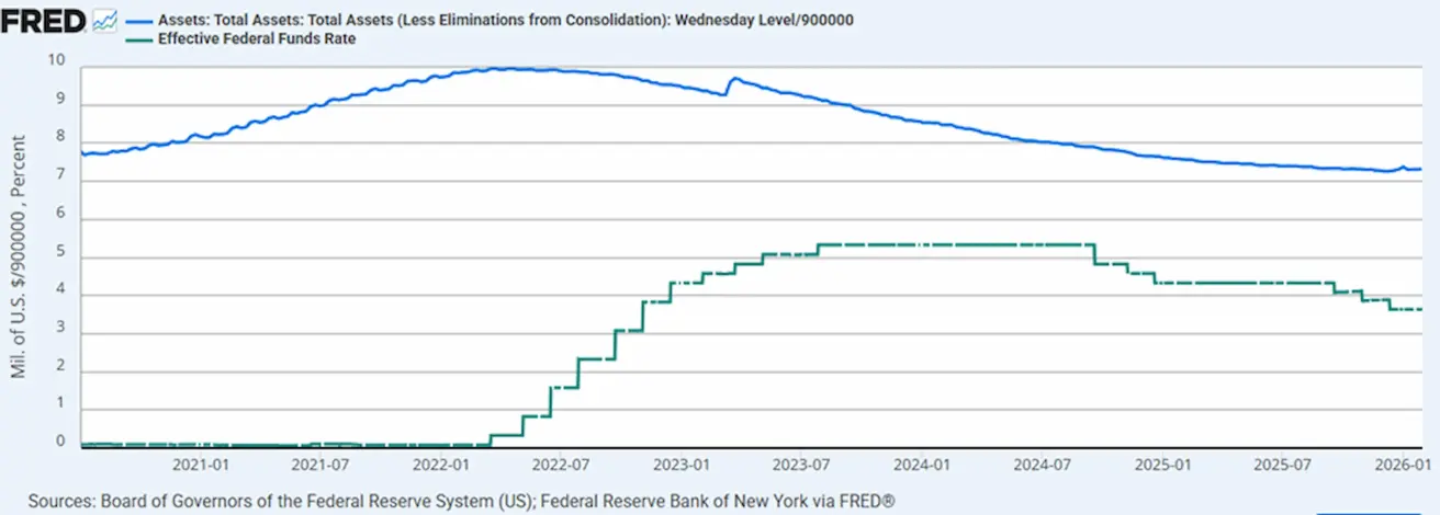 - Federal Reserve balance sheet: USD 6.605 trillion, +1.09% since the suspension of QT (USD 6.535 trillion).