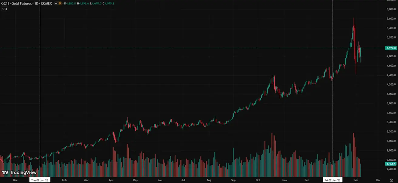Weekly performance +0.20% (week-end close: $4,979.8 per troy ounce); year-to-date: +14.95%.