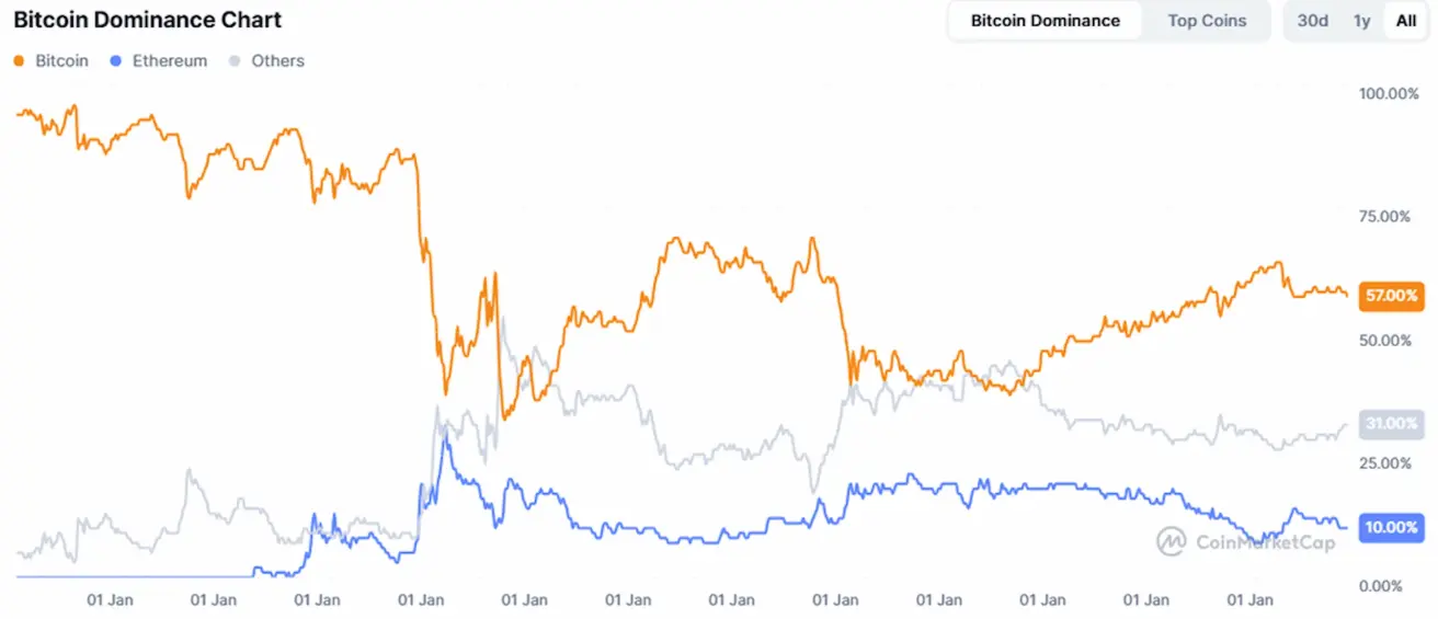 - Bitcoin: 58,1% (58,2%);