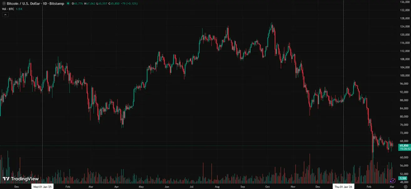 Weekly performance +0,38% (week-end close: $65864); year-to-date: -24,92%.