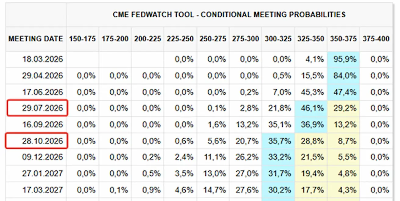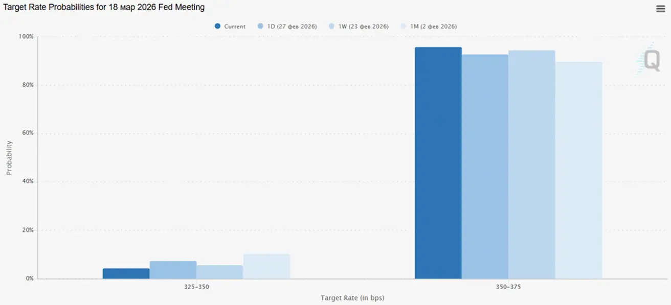 At the next meeting (March 18): the estimated probability of a 0.25% rate cut stands at 4.28%: