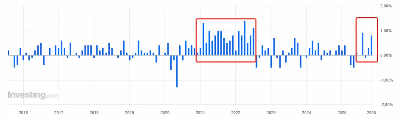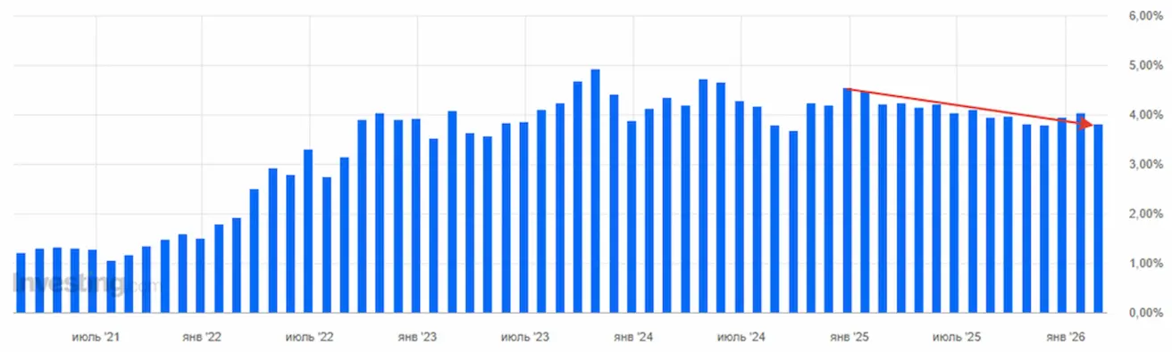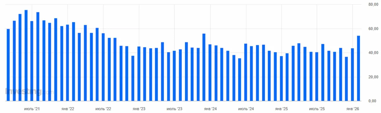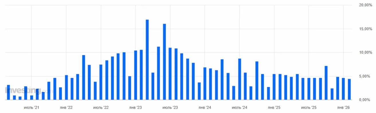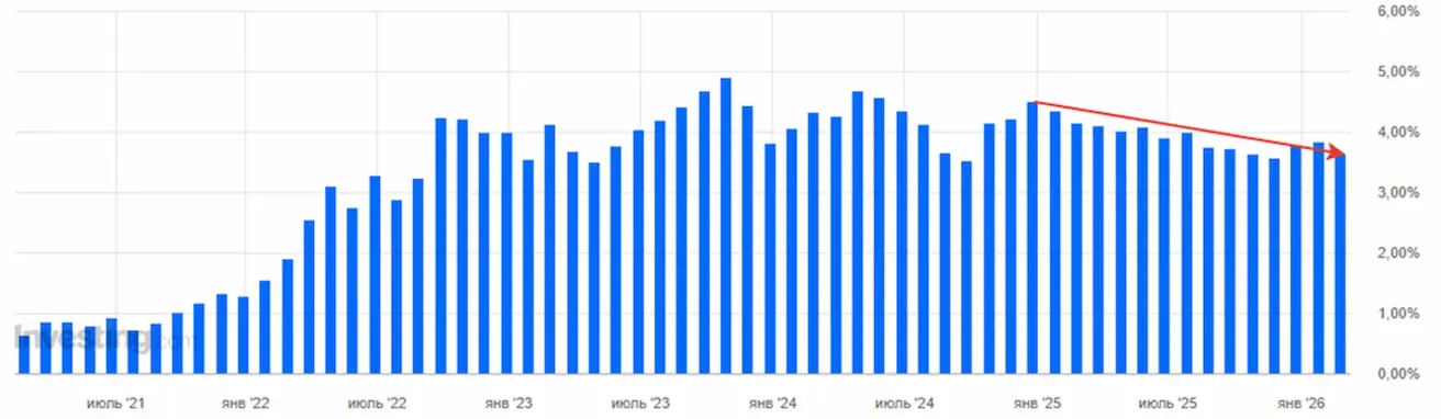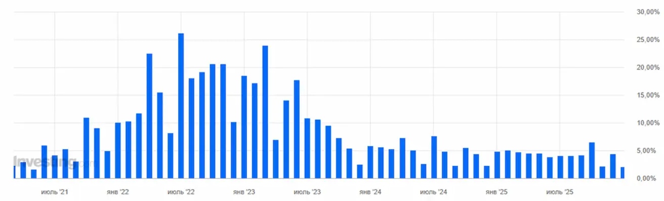In scale, this represents one of the strongest monthly increases over the past year, following the spikes of 2021–2022. Producer inflation has historically been a leading indicator of inflation, but it is still too early to say this marks the beginning of a new inflationary trend. The market views this as volatility. Consumer inflation indices, consumer spending, and inflation expectations are generally declining, and amid rising PPI, their upcoming releases will be in focus.