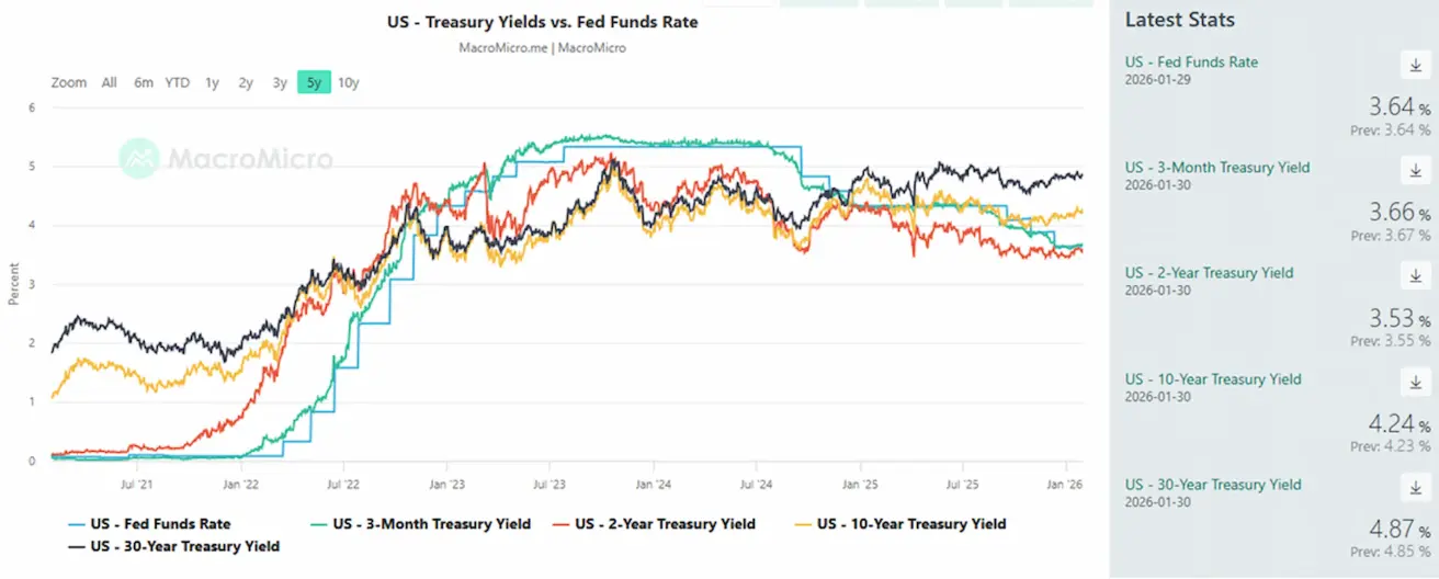 The first Federal Reserve meeting took place, at which a 10–2 majority decided to keep the policy rate unchanged within the 3.50–3.75% range.