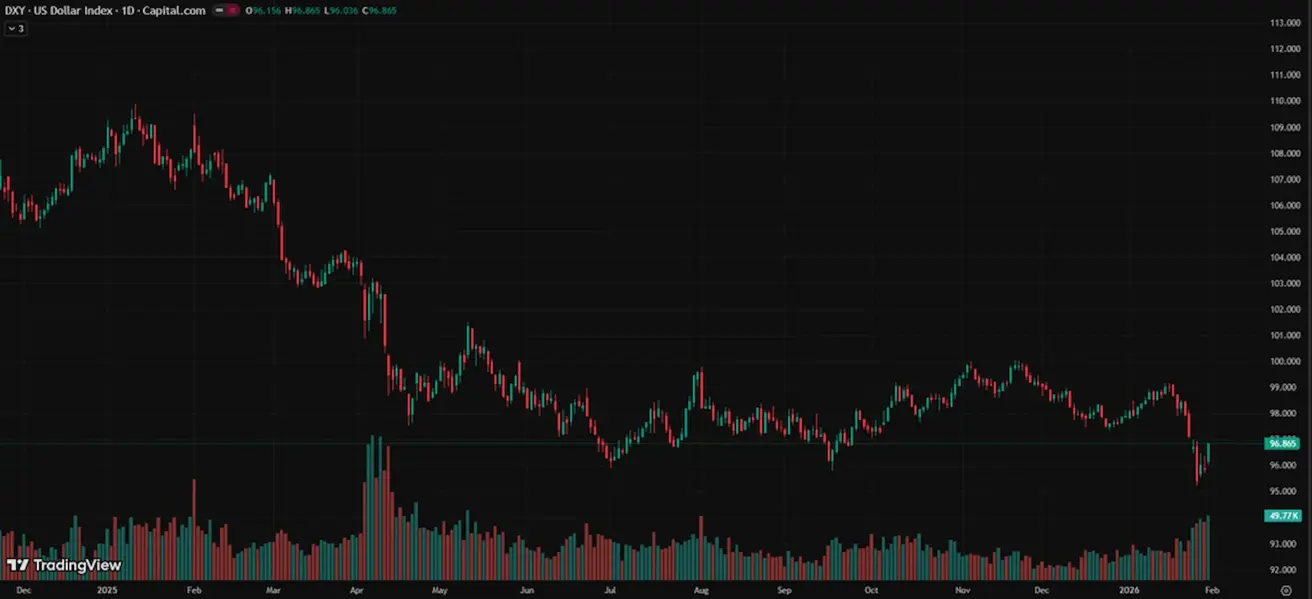 Drivers of the pullback: Real interest rates and Fed expectations, as the rhetoric favored keeping rates at current levels, gold typically benefits from declining real rates. Against this backdrop, large players took profits following an overheated rally (gold posted a very strong uptrend throughout 2025 and early 2026 with virtually no deep corrections).