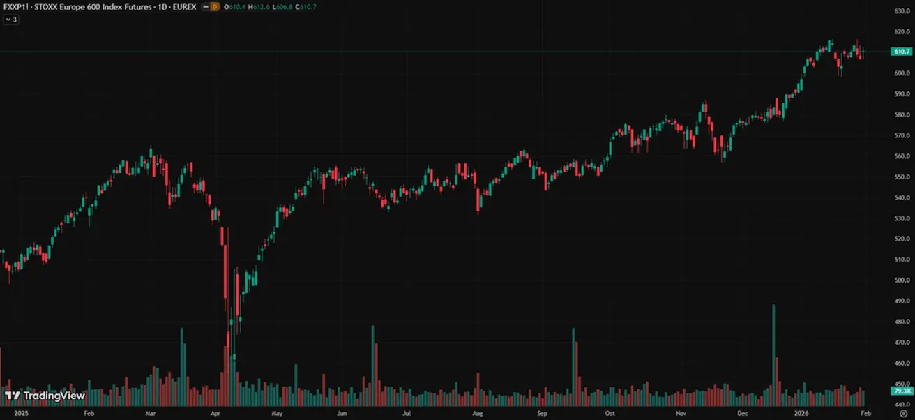 Weekly performance: +0.43% (Week-end close: 610.7); January performance: +2.81%.
