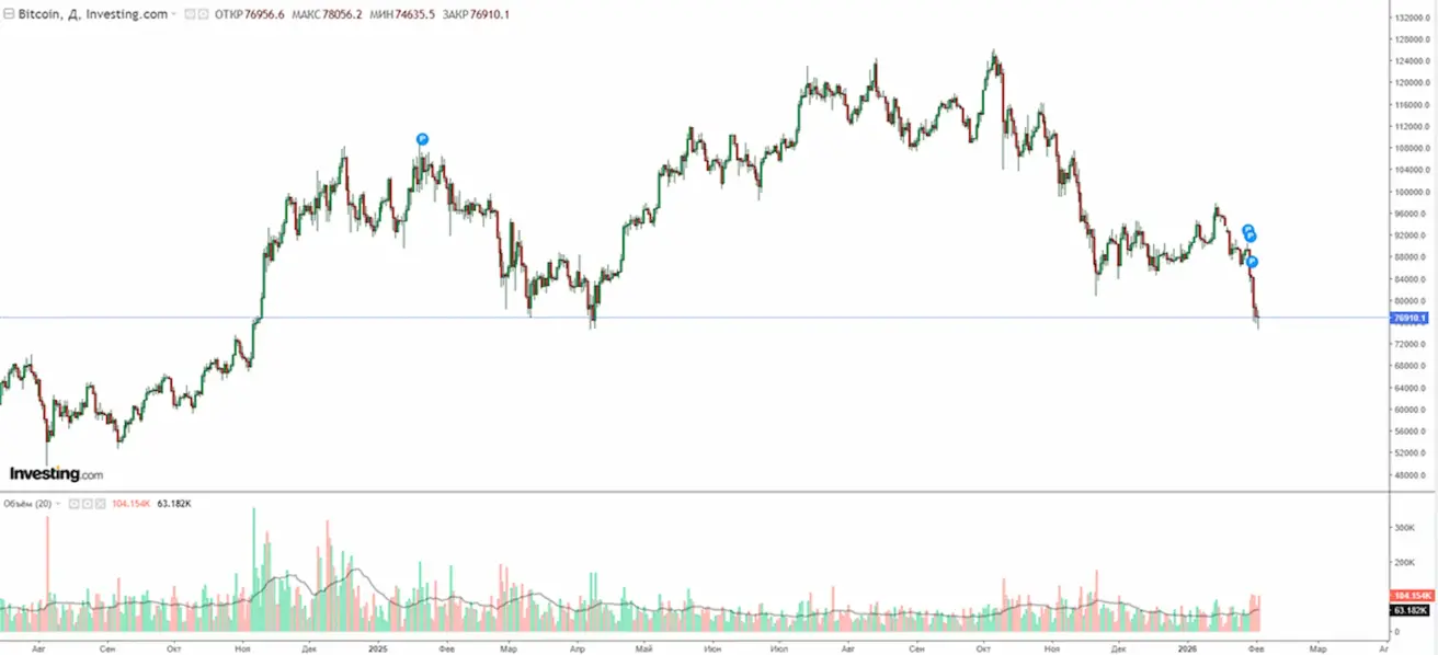 Judging by candlestick patterns and trading volumes, stop-losses on long positions were triggered, leverage was unwound, and the move was likely amplified by options hedging.
