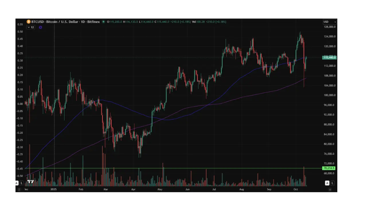 Bitcoin ended the week down -6.68%, closing at $115230. Year to date, it has gained +22.90%.