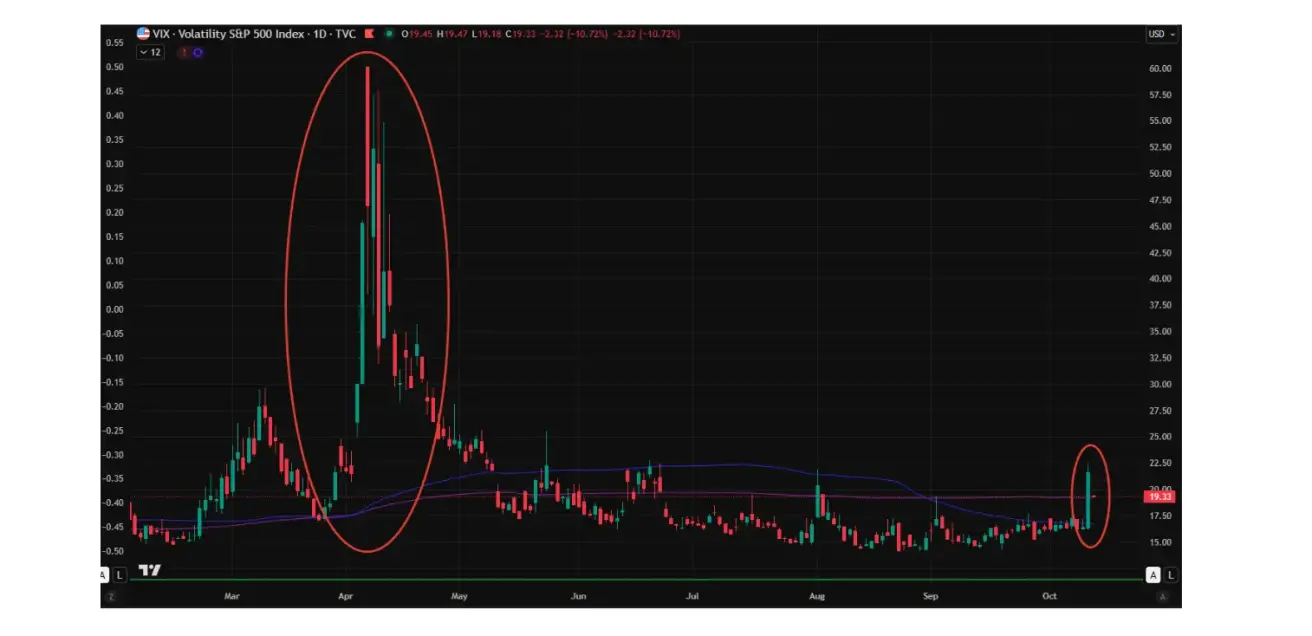 The market’s reaction was clearly reflected in volatility metrics: VIX spiked 32% on Friday alone. For comparison, the previous wave of trade war escalation back in April had sent the index soaring by as much as 237%.