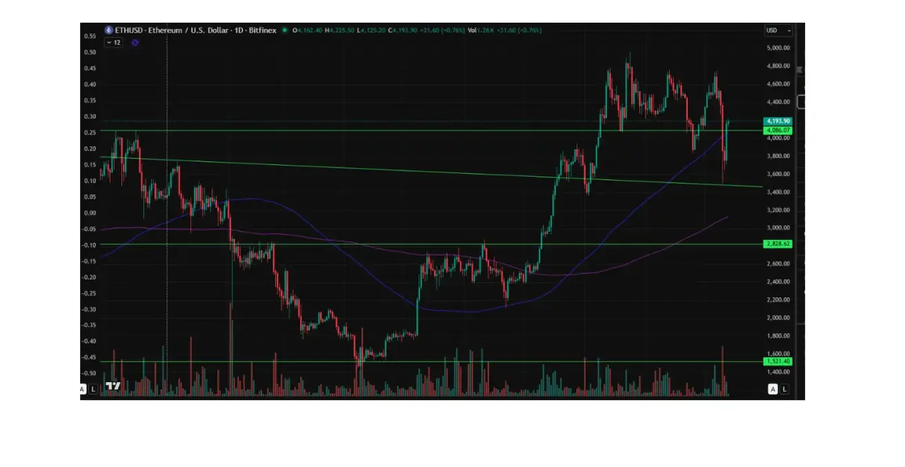 Ethereum ended the week down -7.79%, closing at $4162.30. Year to date, it has gained +24.46%.