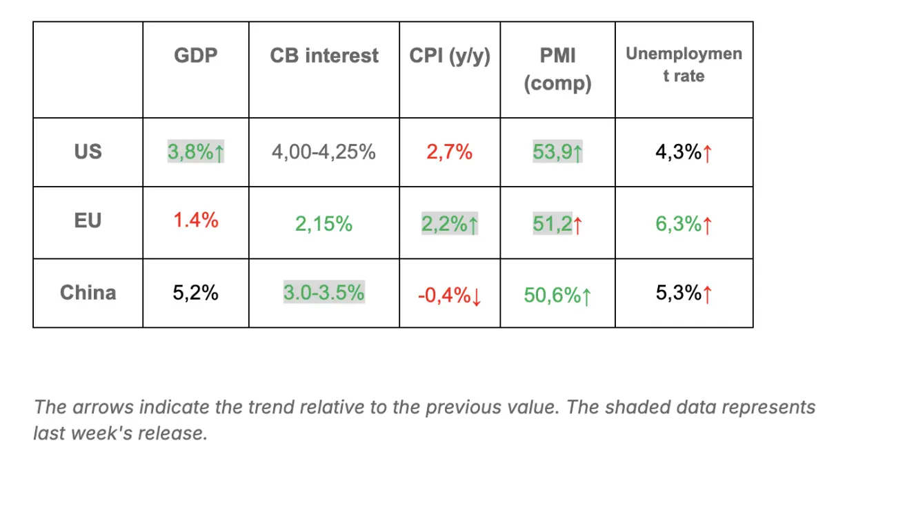GDP (U.S. Bureau of Economic Analysis, BEA) (Q2 2025, annualized, second estimate): +3.8% (advance estimate: 3.30%; Q1 2024: – 0.5%)