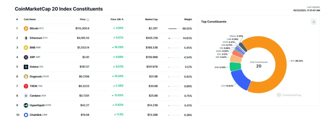 CoinMarketCap Top 10 Index Constituents:
