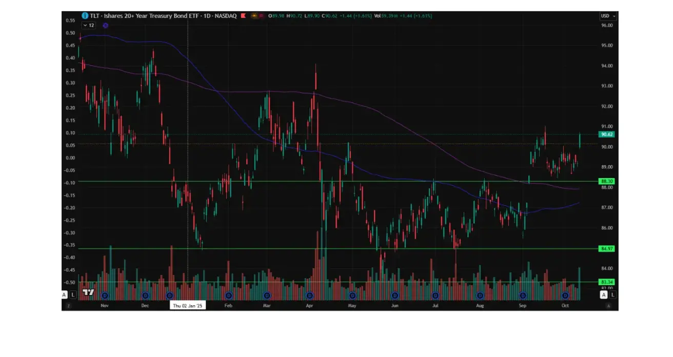 The 20+ Year U.S. Treasury Bond ETF (TLT) ended the week up +1,39%, closing at 90,62. Year to date, the index is up +3.21%.