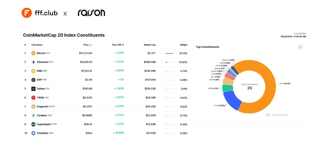 CoinMarketCap Top 20 Index Constituents:
