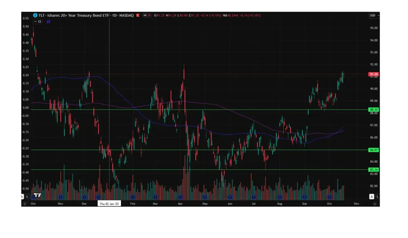 The 20+ Year U.S. Treasury Bond ETF (TLT) ended the week up +0,64%, closing at 91,20. Year to date, the index is up +3.87%.