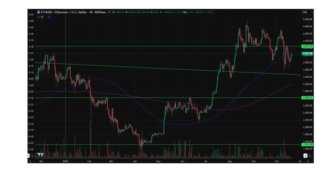 Ethereum ended the week down -4.15%, closing at $3989,6. Year to date, it has gained +19,30%.