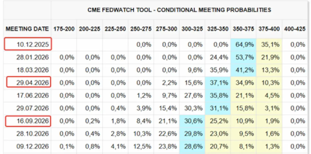 - Steven Miran (a Trump-aligned nominee) continues to push for a 50 bps rate cut in December.