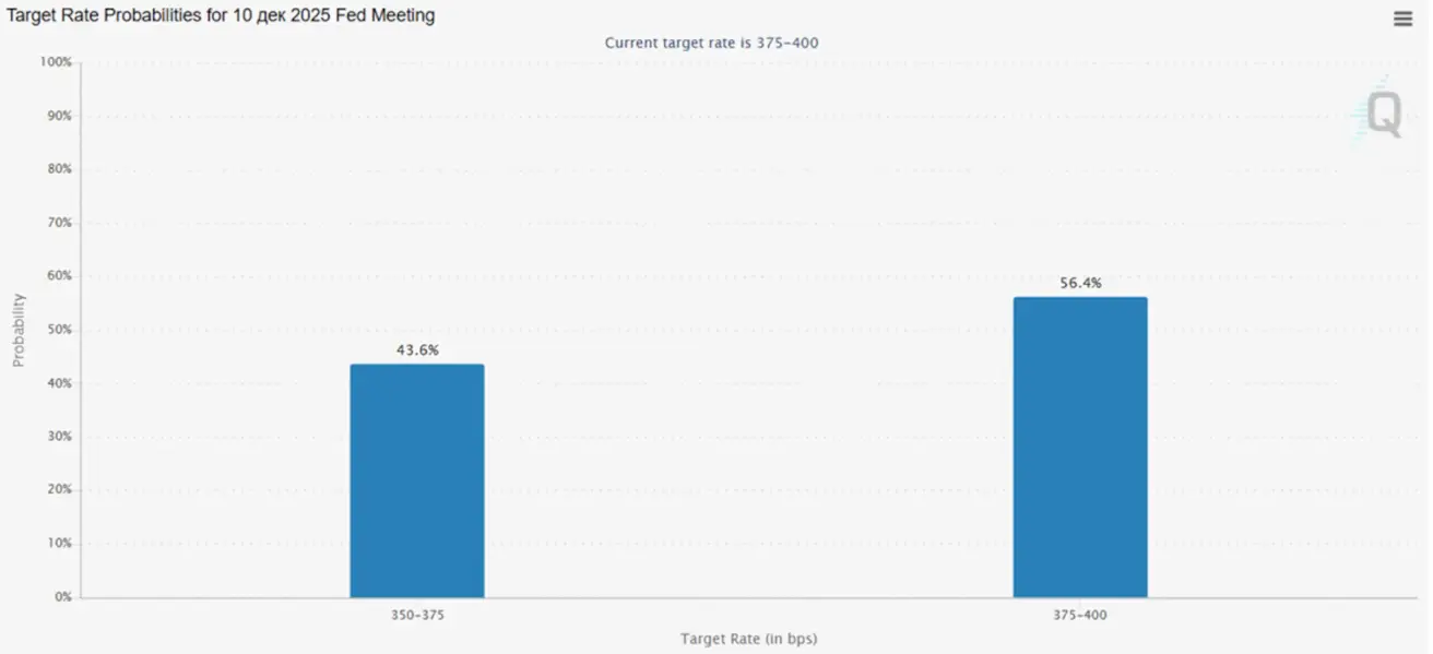 - For the next meeting (December 10): the implied probability of a 25 bps rate cut stands at 43.6% (down from more than 80% prior to the last meeting).