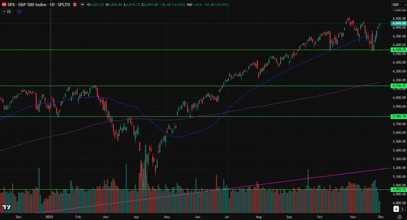 Weekly performance: +3,73% (week closed at 6,849.08). Year-to-date performance for 2025: +16.02%.