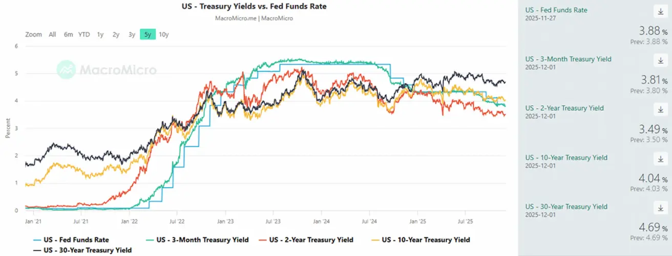 - Federal Funds Effective Rate (EFFR): 3.75% - 4.0%