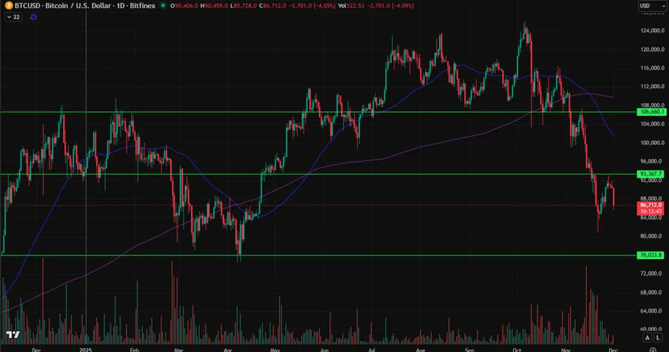BTC FUTURES Weekly performance: +3.91% (week closed at $90,413.00). Year-to-date: –3.75%.