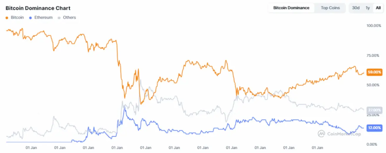 - Bitcoin: 59.2% (vs 58.8%),