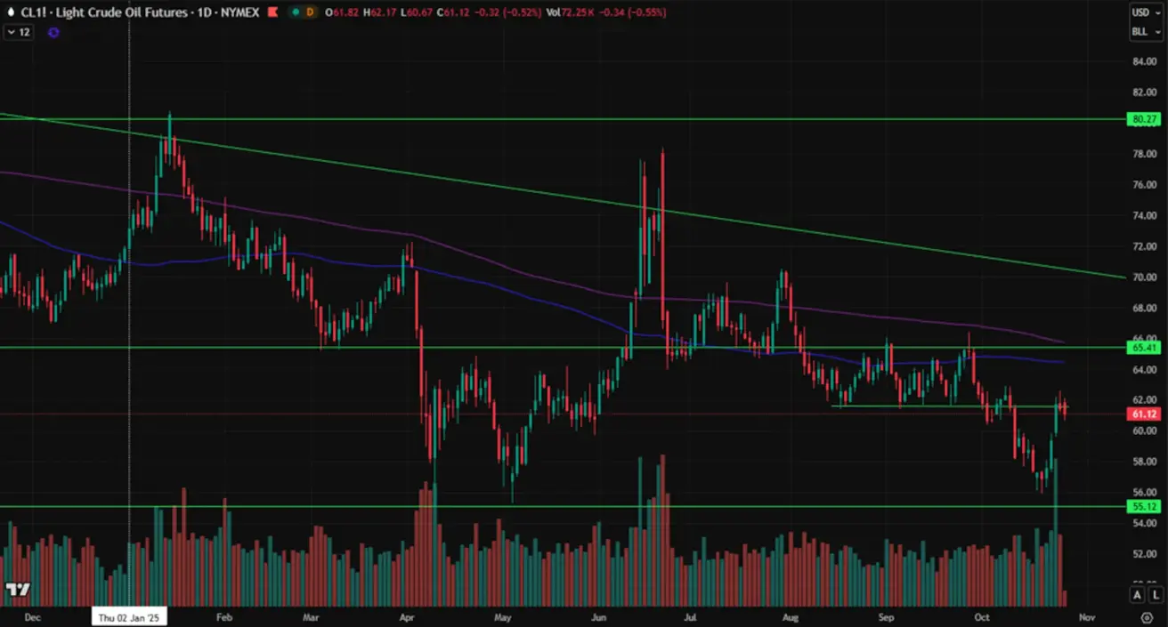 Weekly performance: +7.32% (week closed at $61.44 per barrel).Year-to-date performance: –14.49%.