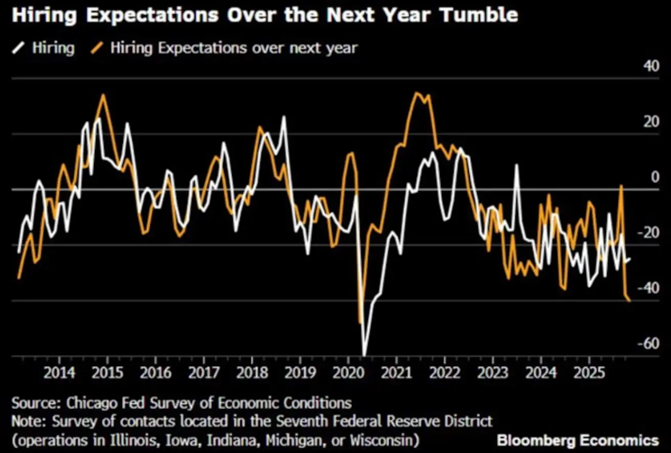 Chicago Fed: Hiring expectations for the next year: -40% — the lowest level since the COVID year of 2020.