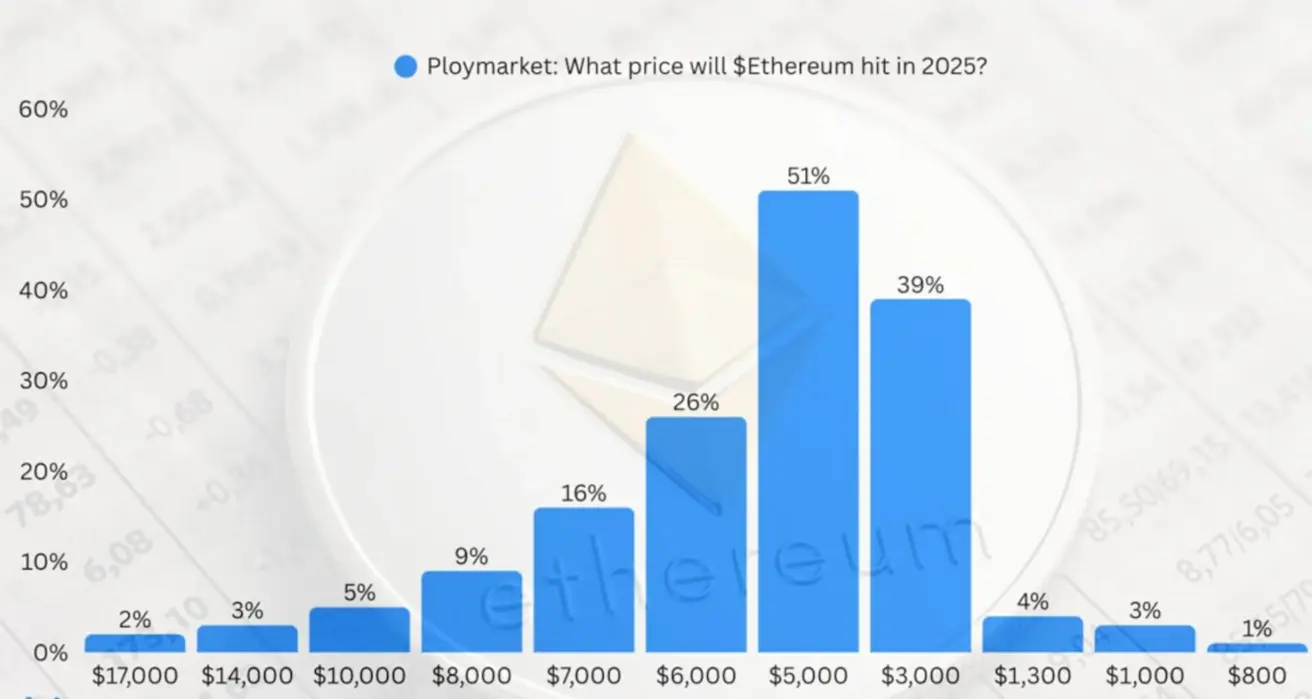 Traders’ expectations for Ethereum’s price by the end of 2025, according to Polymarket: