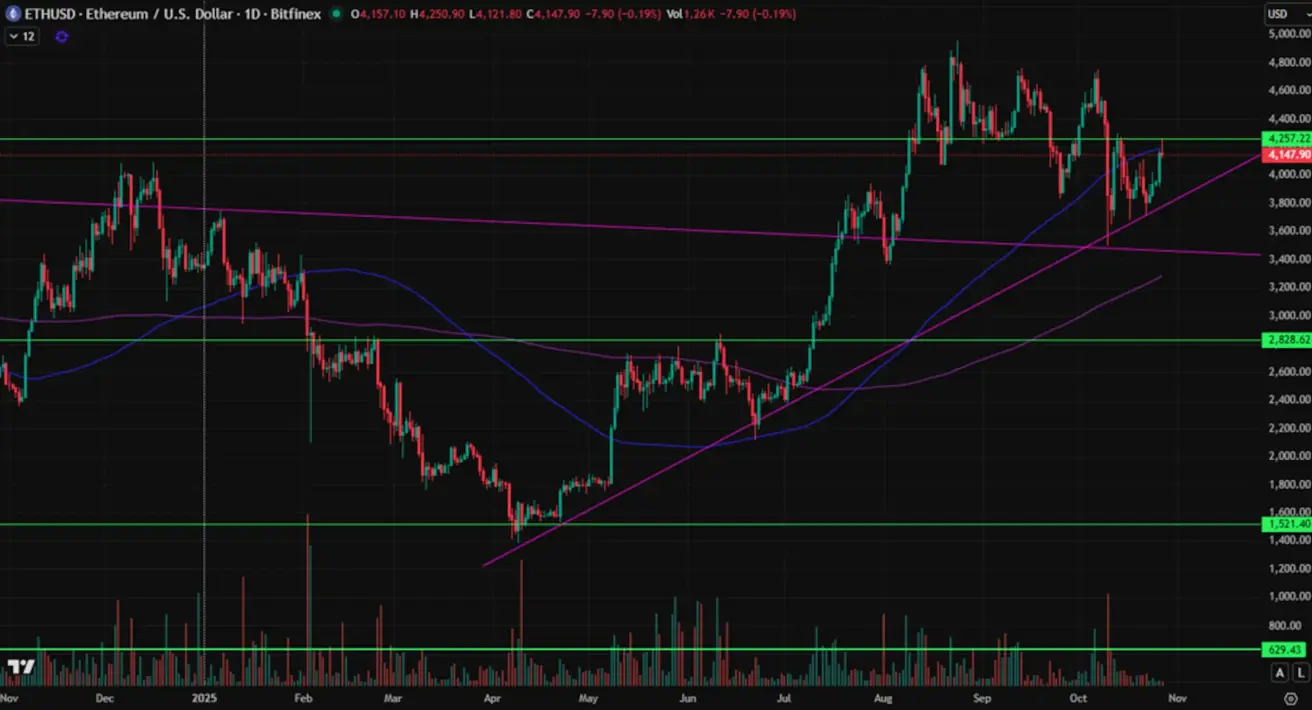 Weekly performance: +3.30% (week closed at $4,126.90 per troy ounce). Year-to-date growth: +56.26%. The price was influenced by the strengthening of the U.S. dollar, positive developments in the U.S.– China trade talks, and technical overbought conditions in the market.
