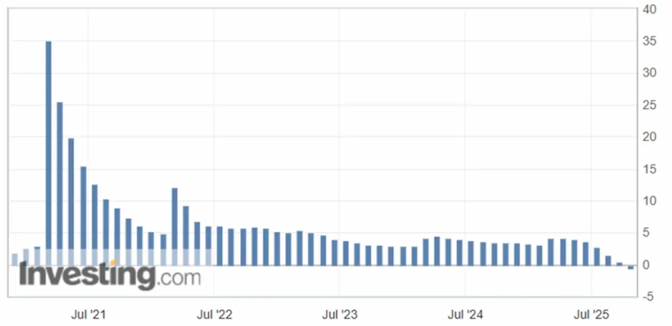 At the same time, industrial output remains stable at a long-term level of 6.5% year-on-year. The main drivers are mining, manufacturing, computers, and telecommunications. GDP growth slowed to 4.8% year-on-year in Q3 (vs. 5.2% previously) due to weak domestic consumer demand, as retail sales fell to 3.0% year-on-year (vs. 3.4%). China’s unemployment rate in September: 5.2% (vs 5.3%).