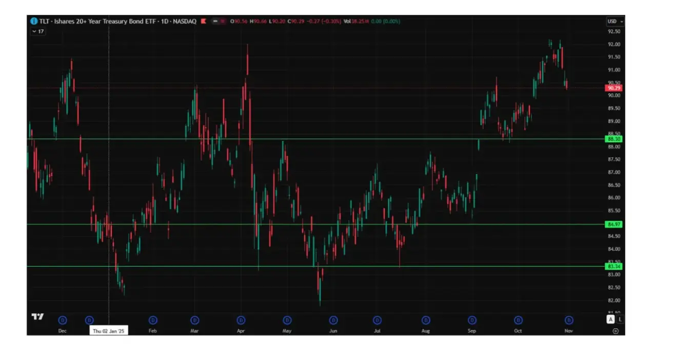 Bond Market – Yields Rise Following the Fed Meeting U.S. Treasury Bonds 20+ (ETF: TLT): ended the week down 1.29% (weekly close: 90.29). Year-to-date performance: +2.84%.