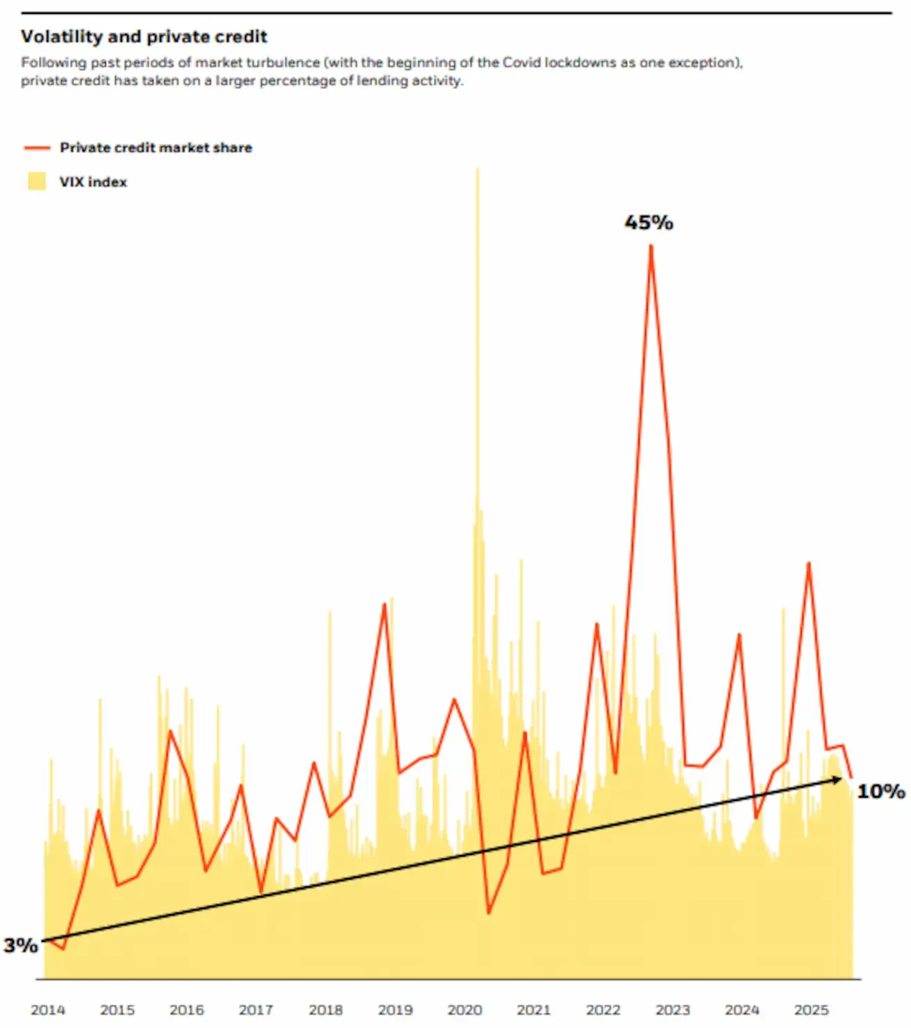 Chart: Private Credit Share vs. VIX Index Over 10 Years