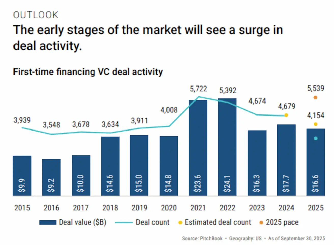 PitchBook data indicates that both the number and total value of VC deals in 2025 are expected to exceed 2024 levels.