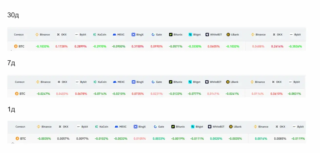 Когда ставка положительная — наоборот, длинные позиции платят коротким, что указывает на преобладание покупателей и более оптимистичные ожидания.
