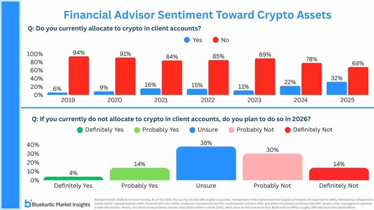 Многие консультанты прямо связывают свою готовность аллоцировать крипто с появлением ясных правил регулирования, таких как закон CLARITY Act.
