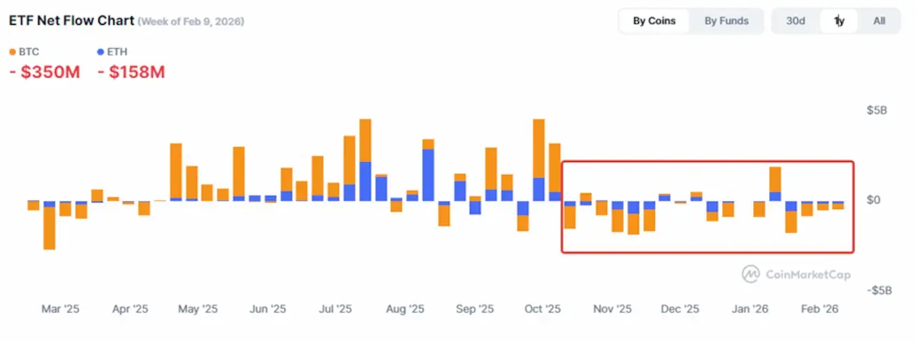 Отток из ETF означает, что фонды сокращают объем биткоина на балансе, что усилило предложение на спотовом рынке и стало дополнительным фактором снижения цены.
