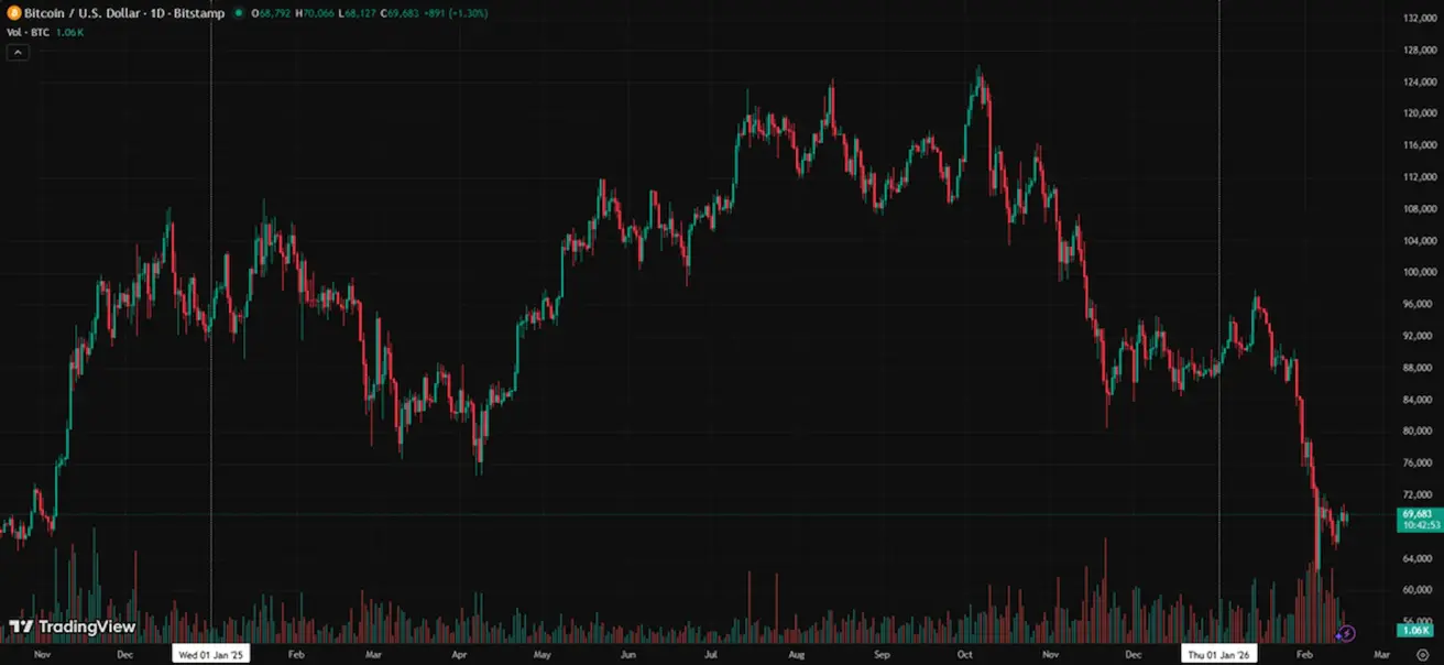 Динамика за неделю: −2,12% (закрытие недели: $68 792); с начала года: −21,58%.