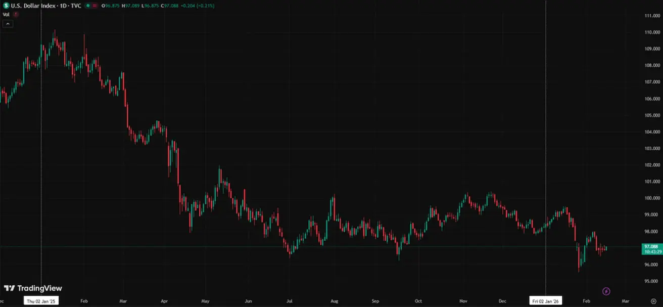 После снижения в конце 2025 года доллар США перешел в фазу стабилизации и частичного восстановления. Ожидания более нейтральной политики ФРС ограничивают потенциал дальнейшего роста, но при этом не создают устойчивого давления на ослабление доллара.